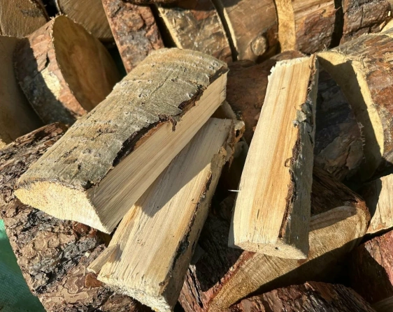 Сосна — отличный вариант для быстрого розжига и активного пламени. Часто берут для оперативной растопки и «разгона» печи.